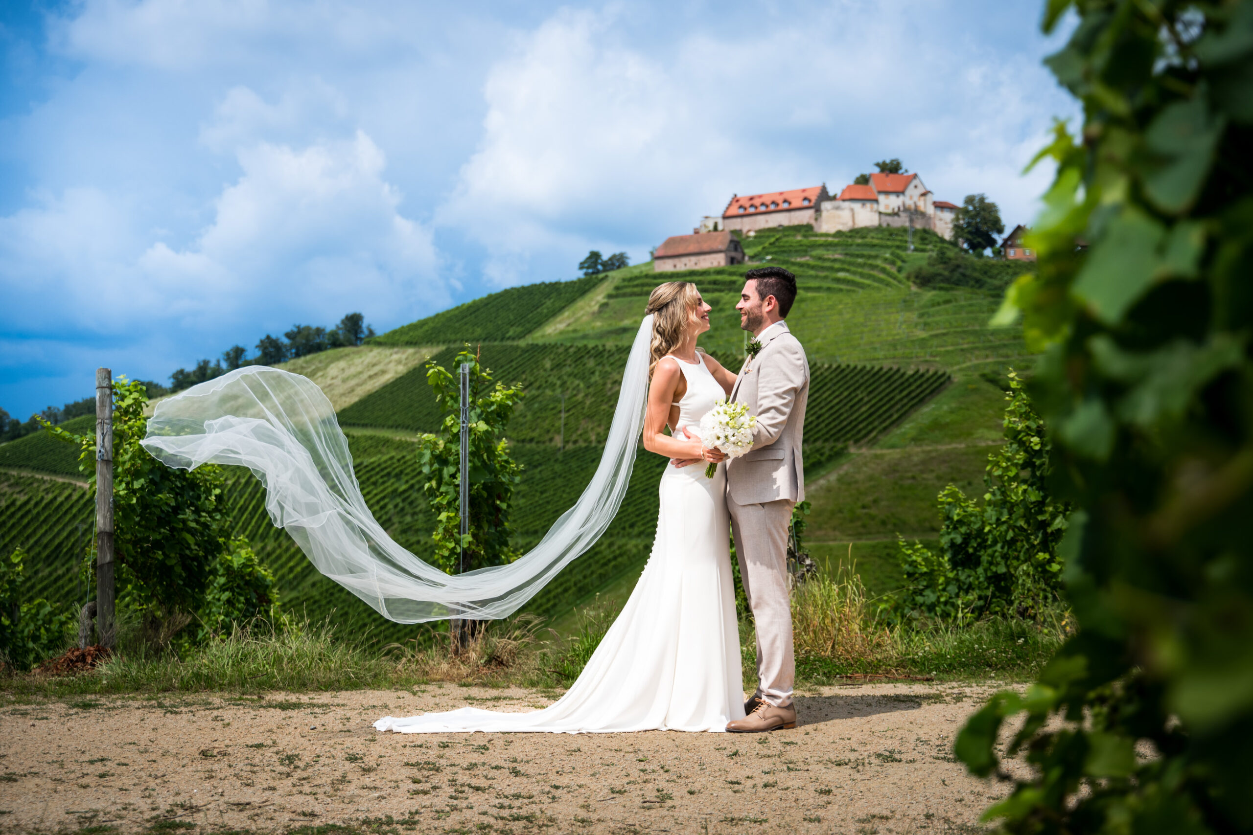 Nach dem Ausklang des Sektempfangs können wir uns dann gerne für ein ungezwungnes Brautpaarshooting kurz zurückziehen, vielleicht ja sogar während Eure Gäste sich zu ihren Tischen begeben bzw. zur “golden hour”. P.S. Dies lässt sich ggf. auch gut “nachstellen” 😉